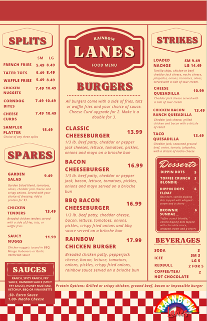We’ve updated our menu to include everyone’s favorite bowling snacks, meals, and drinks! From build-it-your-way burgers to nachos with unlimited toppings, we have the best game time options. Click below to see everything we offer.